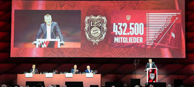 其中,团结协作尤为关键:众多专属活动与各代会员间的透明交流表明,拜仁慕尼黑'>拜仁慕尼黑远不止是一家足球俱乐部——它是一个充满活力的共同体。而且规模庞大:“拜仁慕尼黑'>拜仁慕尼黑目前拥有432500名会员,是全球会员人数最多的俱乐部。” 海纳说道,并向在场会员呼吁:“你们所有人,都是这个大家庭的一员——我们可以为此自豪!”