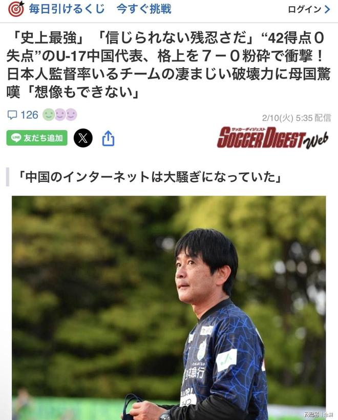 日本媒体指出,被称为历史上最强大的U17国家足球队以令人难以置信的7-0击败了东南亚强队印尼,“穿着红色制服的中国青少年悄悄地走到他们国家的球迷看台前,拍手,低下了头。他们的表情几乎看不到快乐。就像预定的训练结束了一样。”