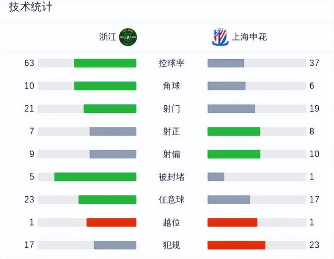 在这场比赛中,上海申花从场景到结果都不尽如人意。赛后数据显示,面对浙江队,上海申花整体处于劣势,控球率只有37%,角球比浙江队少4个。射门次数、传球成功率、任意球次数都不如浙江队。从统计数据来看,上海申花最终能拿到1。:第一次战平浙江,不但不应感到遗憾,而且应感到高兴。