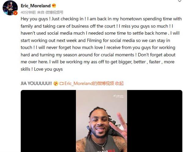 “嘿,伙计们!上个线冒个泡,我回到了我的家乡和家人在一起,处理一些球场外的事情,我太想念你们了!我还不太运用这交际媒体,我回到家需求一些时刻安顿一下。我将从下周开始练习,会上传至交际媒体上,这样我们就可以保持联系了!” 莫兰德在微博上说道。