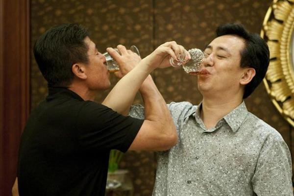 许家印和刘永灼给李章洙敬酒,许家印和李章洙甚至还喝起了“交杯”。