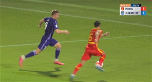 第83分钟,鲍亚雄扑球脱手,身前的巴顿打空门得手,主裁判吹罚越位在先,但VAR介入后改判进球有效,津门虎4-3再度领先。