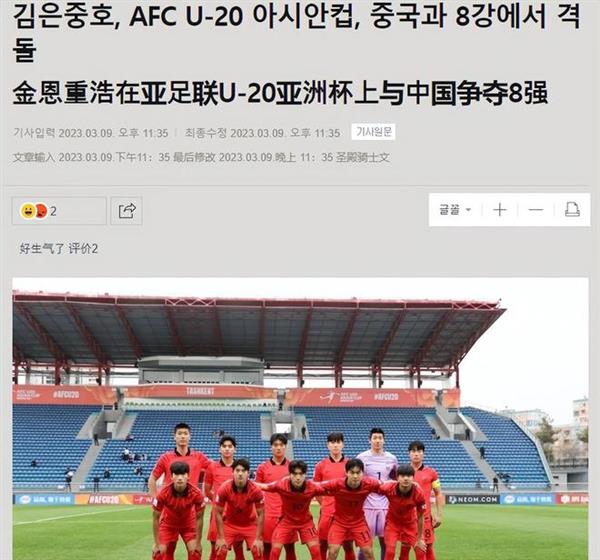 中国队刚刚确定出线资格,韩国媒体很快进行了跟踪报道,确认他们的下一个对手将是中国队。文章大致介绍了中国队的比赛和小组的出线队伍。文章显示,中韩两队将于12日举行比赛。如果他们能击败中国队,他们不仅可以进入半决赛,还可以参加今年5月举行的U20世界杯。