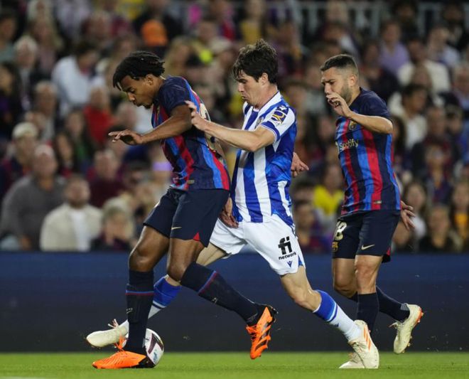 根据赛程安排,本轮西甲27冠王巴塞罗那在主场迎接皇家社会的挑战,两队首轮对决,“红蓝军团”客场4-1大胜。莱万多夫斯基、弗兰基·德容、登贝莱等知名球员一个接一个地出现在这场战斗中。阵容豪华,首发价值是对手的近两倍。然而,是皇家社会率先进球。