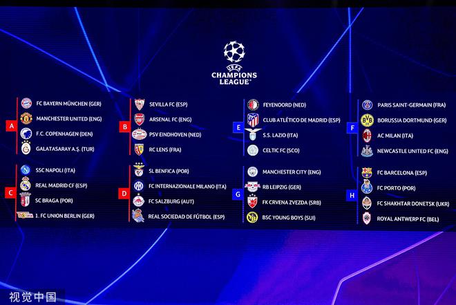 九月一日凌晨,本赛季冠军联赛32支球队的小组抽签结果公布。