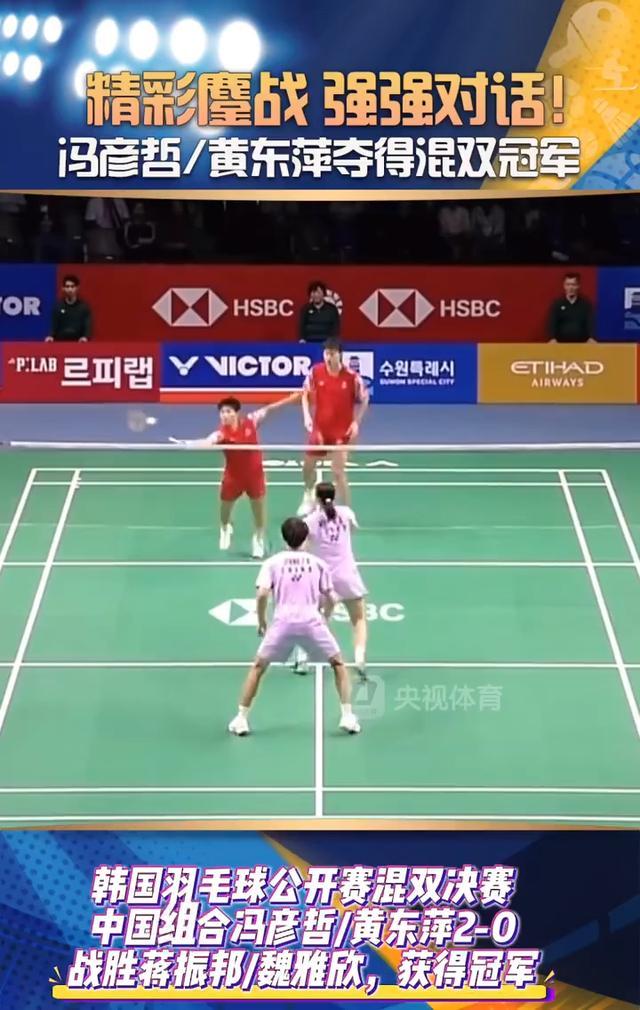 冯彦哲/黄东萍在2025年韩国羽毛球公开赛混双决赛中以2-0击败队友蒋振邦/魏雅欣,获得冠军。
