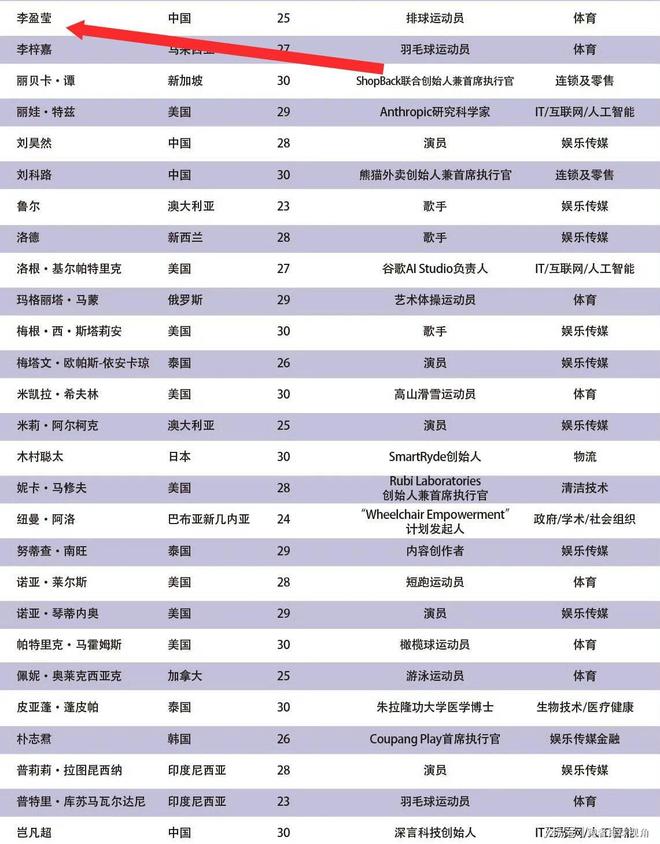 这周天津女排将会出发前往澳门,为接下来的全运会小组赛做准备,而在此之前关于李盈莹,也传来了一个好消息,2025年的亚太青年体育家论坛上,公布了2025年亚太U30杰出青年领袖榜单的名单,这份榜单一共有143人,涉及了影视、物流、IT、体育等多个方面,而李盈莹有幸成为了这其中的一员,李盈莹也是中国女排唯一的代表,不得不说这是一种排面,李盈莹虽然在2025年的世界大赛上表现的不多,但是在之前还是起到了举足轻重的作用,所以她绝对是实至名归。