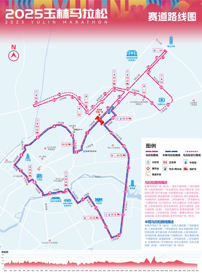 玉林市政广场(起点)-玉东大道向西-广场东路向南-人民东路向西-一环东路向北-民主中路向南-白石桥路向西-清宁路向南-内环西路向南-人民中路向东-玉州路向南-城站路向南-江滨路向南-民主南路-中港路向东-金港路-二环东路向东-二环北-石棠路向东-石牛路-玉东大道-玉东大道-玉东大道-教育东环路-