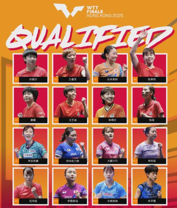 在女单方面,参赛的是孙颖莎、王曼昱、张本美和、陈幸同、蒯曼、王艺迪、朱雨玲、陈熠、早田希娜、桥本帆乃香、大藤沙月、申裕斌、石洵瑶、伊藤美诚、长崎美柚、朱芊曦,一共16人。其中,国乒女队球员占据7席,日本女队球员占据6席。在混双方面,参赛的是林诗栋/蒯曼、林仲勋/申裕斌、松岛辉空/张本美和、玛纳什-沙/迪亚-奇塔莱、黄镇廷/杜凯琹、雨果/高桥-布鲁娜、罗伯勒斯/肖瑶茜。还有一对是混双外卡组合,名单暂时未公布。