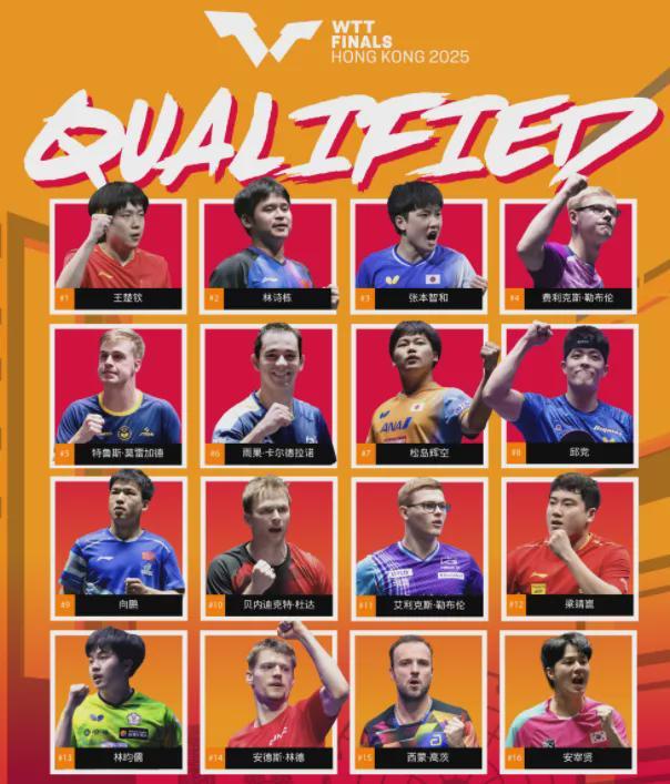 不久前,WTT官方公布了参加2025WTT香港总决赛的大名单。在男单方面,参赛的是王楚钦、林诗栋、张本智和、费利克斯-勒布伦、莫雷加德、雨果、松岛辉空、邱党、向鹏、杜达、艾利克斯-勒布伦、梁靖崑、林昀儒、安德斯-林德、西蒙-高茨、安宰贤,一共16人。其中,国乒男队球员占据4席。