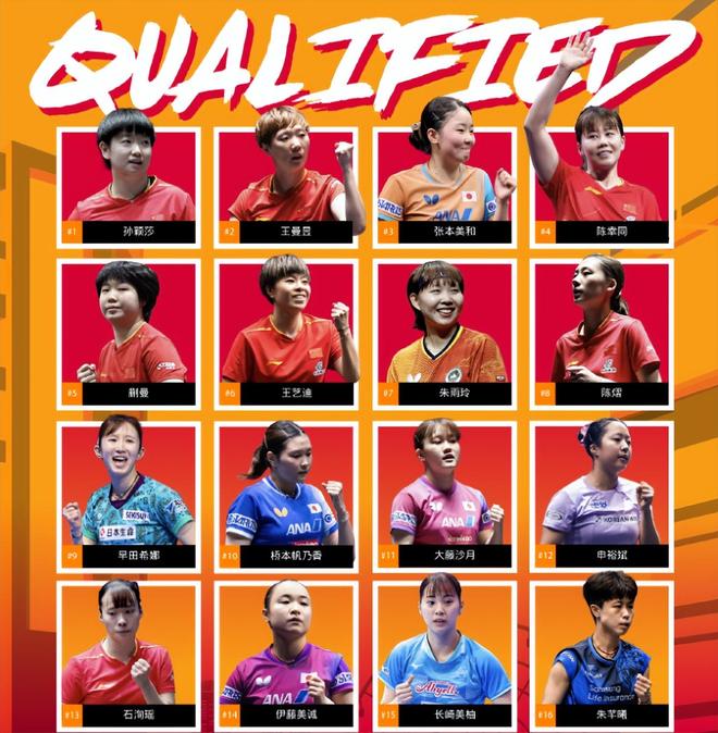 入选女单的球员有孙颖莎、王曼昱、陈幸同、张本美和、王艺迪、蒯曼、陈熠、石洵瑶、朱雨玲、早田希娜、大藤沙月、桥本帆乃香、申裕斌、长崎美柚、伊藤美诚、朱芊曦。女单16位球员名单也全部出炉。与两周前公布的名单相比,增加了朱芊曦。