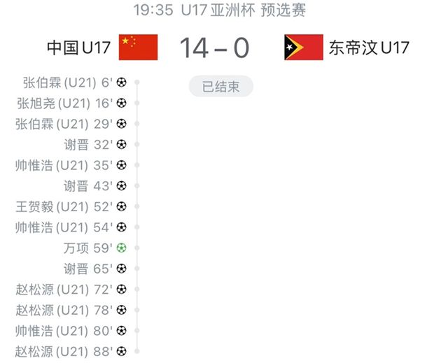 U17亚洲杯预选赛赛场传来振奋人心的消息,U17国足以14:0的悬殊比分横扫东帝汶U17,拿下小组赛两连胜,也让球迷们久违感受到男足国字号队伍的从容气场。