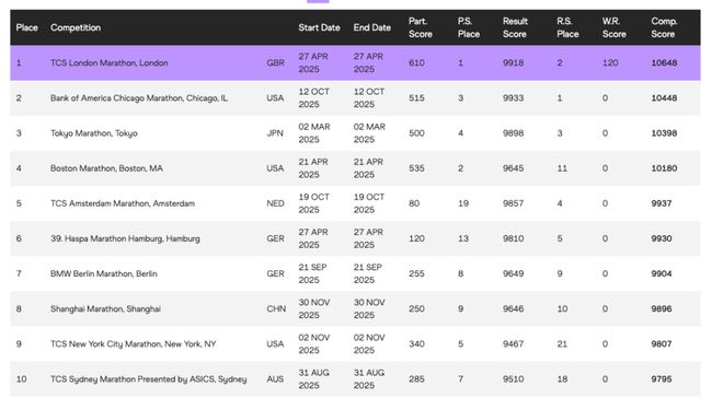 近日,在世界田联发布的2025年全球马拉松排名中,上海马拉松首次跻身世界前十,排名第八,创造了中国马拉松在权威榜上的最佳成绩。