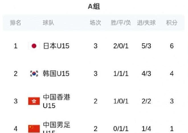 日本东亚杯0-3韩国!U15国足压力陡增:不胜中国香港将垫底+降级