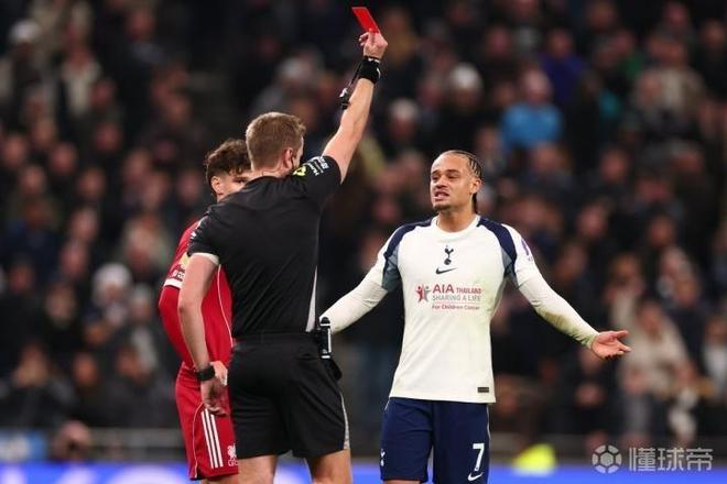 即便比赛终场哨声响起,热刺众将与主帅弗兰克也大多留在球场上,向看台上的球迷鼓掌致意。而大批主场球迷,尤其是南看台的死忠拥趸,同样驻足原地,用掌声回应着拼尽全力的球队。全场唯一的怒火,都倾泻在了当值裁判身上——哈维-西蒙斯与克里斯蒂安-罗梅罗先后被红牌罚下的判罚,让球迷难以接受。这样的温情一幕,与上月球队主场不敌切尔西、富勒姆时的死寂与愤懑,形成了鲜明对比。