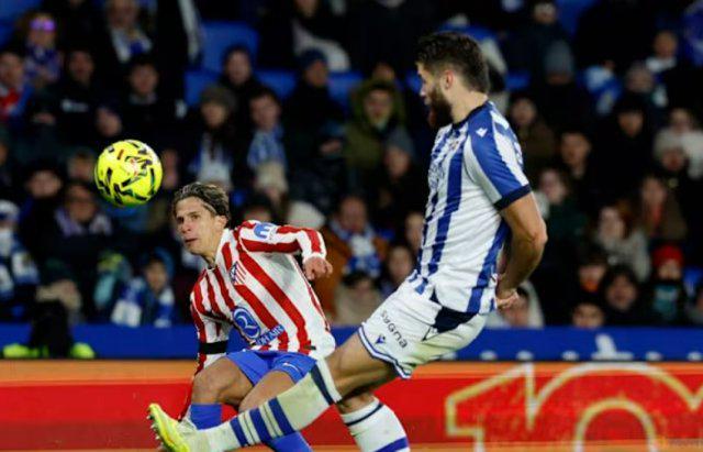 西甲第18轮,马竞客场1-1战平皇家社会。第50分钟,朱利亚诺·西蒙尼右路传中,瑟洛特头球破门,马竞1-0领先。第55分钟,久保建英右路横传,格德斯后点得球,猛射破门,皇家社会将比分扳平。马竞19轮后得到38分,排名第四。