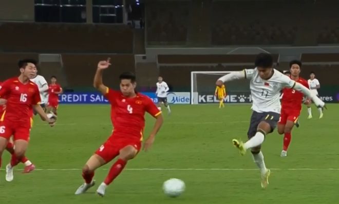 第23分钟,胡荷韬犯规,被出示黄牌。这也是中国队上半场唯一的黄牌。越南队获得任意球机会。屈文康主罚,他直接射门。李昊飞身把球扑了出去。紧接着,阮公方的射门被挡了一下发生变向,弹地后加速往球门飞去。李昊不敢怠慢,把球扑出。第33分钟,阮晓明受伤下场,阮德英替补上场。8分钟后,鲍盛鑫起球传中,杨希后插上头球,结果没有顶到皮球,非常可惜。半场结束,比分依然是0-0!