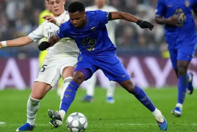 这位前巴萨前锋本有机会威胁皇马球门,却未能给阿韦洛亚的球队制造什么麻烦。他面对的是重重困难:一支完全压制法国球队的皇马,一支在伯纳乌几乎令对手神经崩溃、让姆巴佩、维尼修斯和马斯坦托诺肆意冲击的球队。