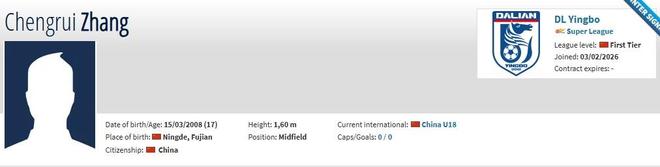 北京时间2月3日,德转更新,U19国青中场张城瑞加盟大连英博