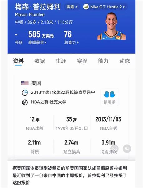 35岁的普拉姆利曾经是梦之队的主力中锋。他篮球智商很高,有出色的应对能力,防守能力很好,保护框架的能力很好。当然,他也有很好的结束能力。