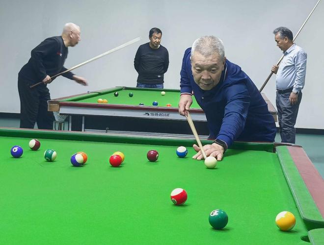 老同志们本着“友谊第一、开心第一”的原则,一边切磋技艺、交流心得,一边拉家常、分享生活趣事。现场气氛轻松活跃、激烈愉快, 喝彩声与台球撞击声交织,一片和谐融洽。
