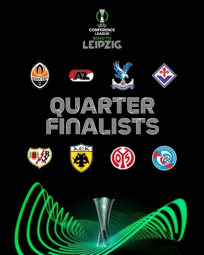 就此,八强全部产生,分别是顿涅茨克矿工、阿尔克马尔、水晶宫、紫百合、巴列卡诺、雅典AEK、美因茨、斯特拉斯堡。对阵方面顿涅茨克矿工会对上阿尔克马尔,水晶宫对上紫百合,巴列卡诺跟雅典AEK争夺一个晋级资格,美因茨战斯特拉斯堡。