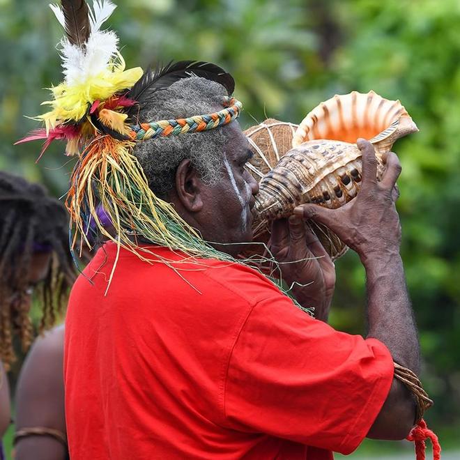赛前合影传承文化,新喀里多尼亚队用海螺寄托祝福