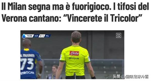 据DAZN台介绍,维罗纳球迷向AC米兰球员高唱“Vincerete, vincerete, vincerete il Tricolor“(你会赢,你会赢,你会赢,你会赢得冠军三色旗)。然而,在这样的歌声下,很多AC米兰球员都有些沮丧。