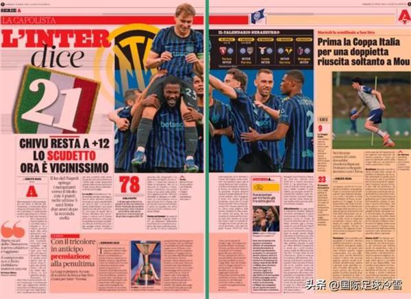 据悉,如果蓝黑军提前夺冠,颁奖典礼将在国际米兰主场对阵维罗纳的倒数第二轮举行。