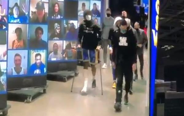 汤神赛后穿保护靴自由行走 科尔:下周进行水池训练