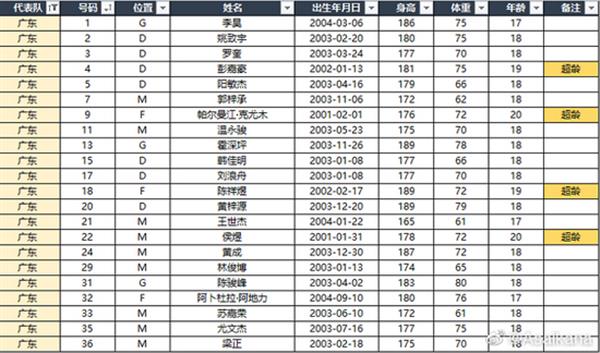 本届参与全运会正赛的球员名单,继续由恒大足校球员为主心骨,其中像彭嘉豪、侯煜、帕尔曼江等,都是曾进入到广州队一线队的球员,再配以深足和广州城部分年青球员组成22人名单。