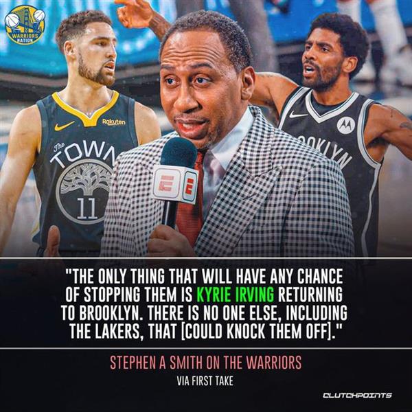 ESPN名嘴斯蒂芬-A-史密斯也在节目中直言,比及克莱-汤普森回归,勇士阵型恢复齐整,他们恐怕在西部没有敌手,哪怕是湖人也难以挑战他们。