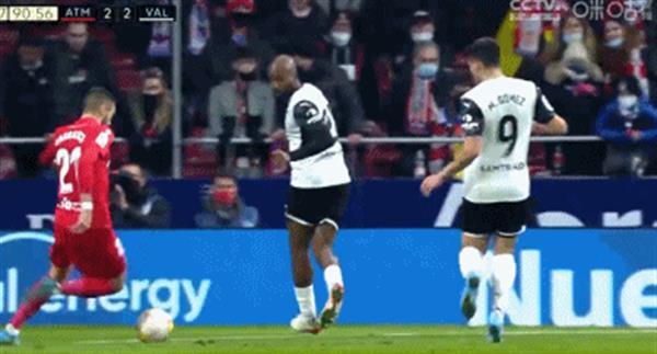 伤停补时第3分钟,科雷亚脚后跟分球,库尼亚横传门前,埃尔莫索将球推射进空门,马竞终究3-2反转瓦伦西亚。
