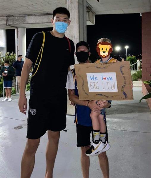 追星成功了!场边举牌小球迷与刘传兴合影留念