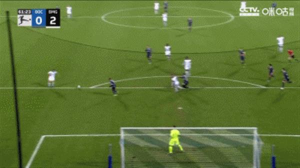 6分钟后,门兴将比分变成2-0。拉伊纳右路横传,恩博洛大禁区中路右脚轻松推射破门。